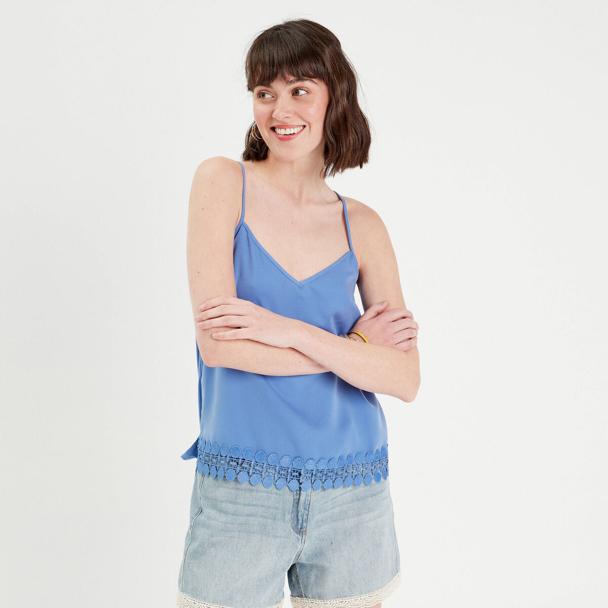 Débardeur bretelles fines bleu femme