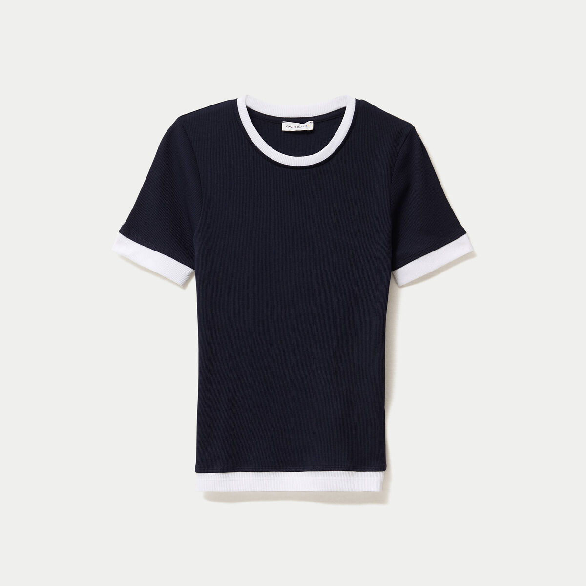 T-shirt ajusté col rond manches courtes bleu marine femme
