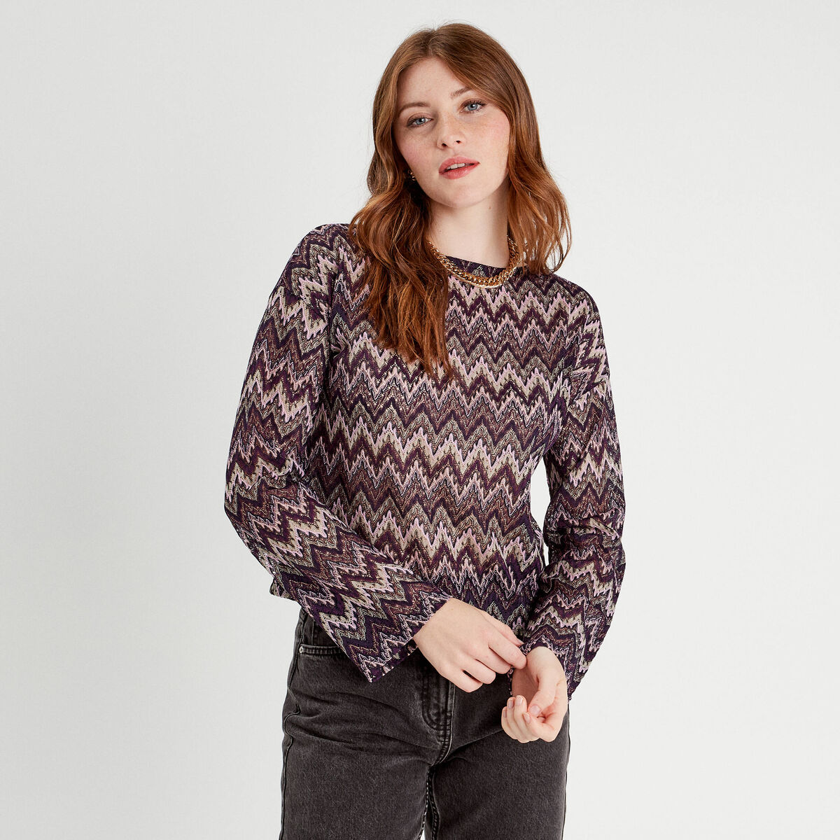 T-shirt col montant manches longues gris femme