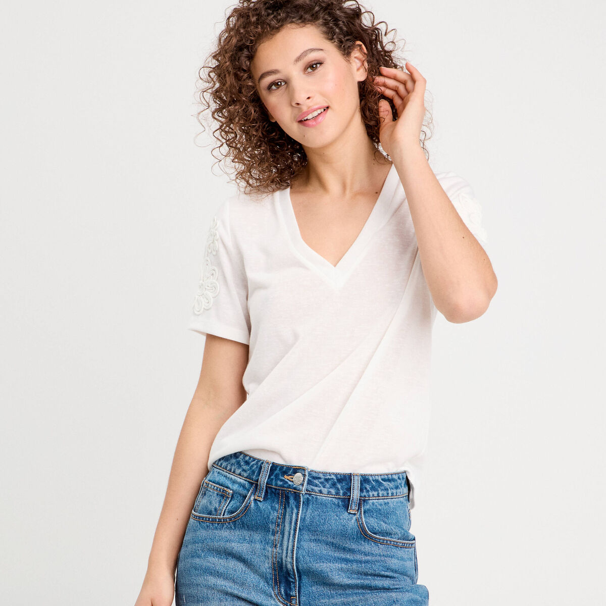 T-shirt manches courtes ecru femme