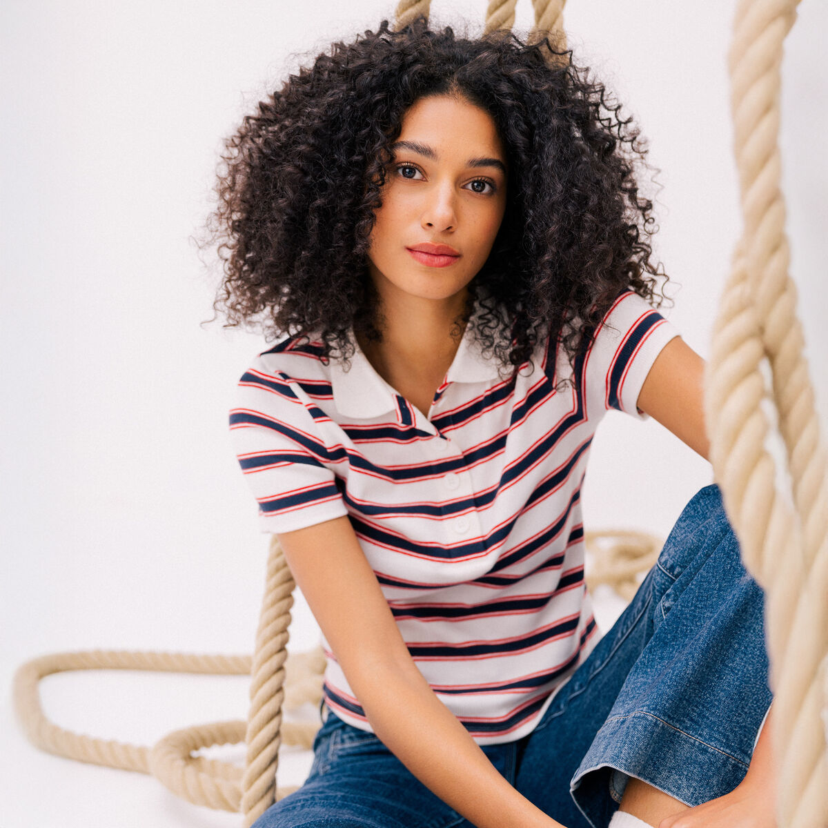 Polo côtelé cintré cropped rouge femme