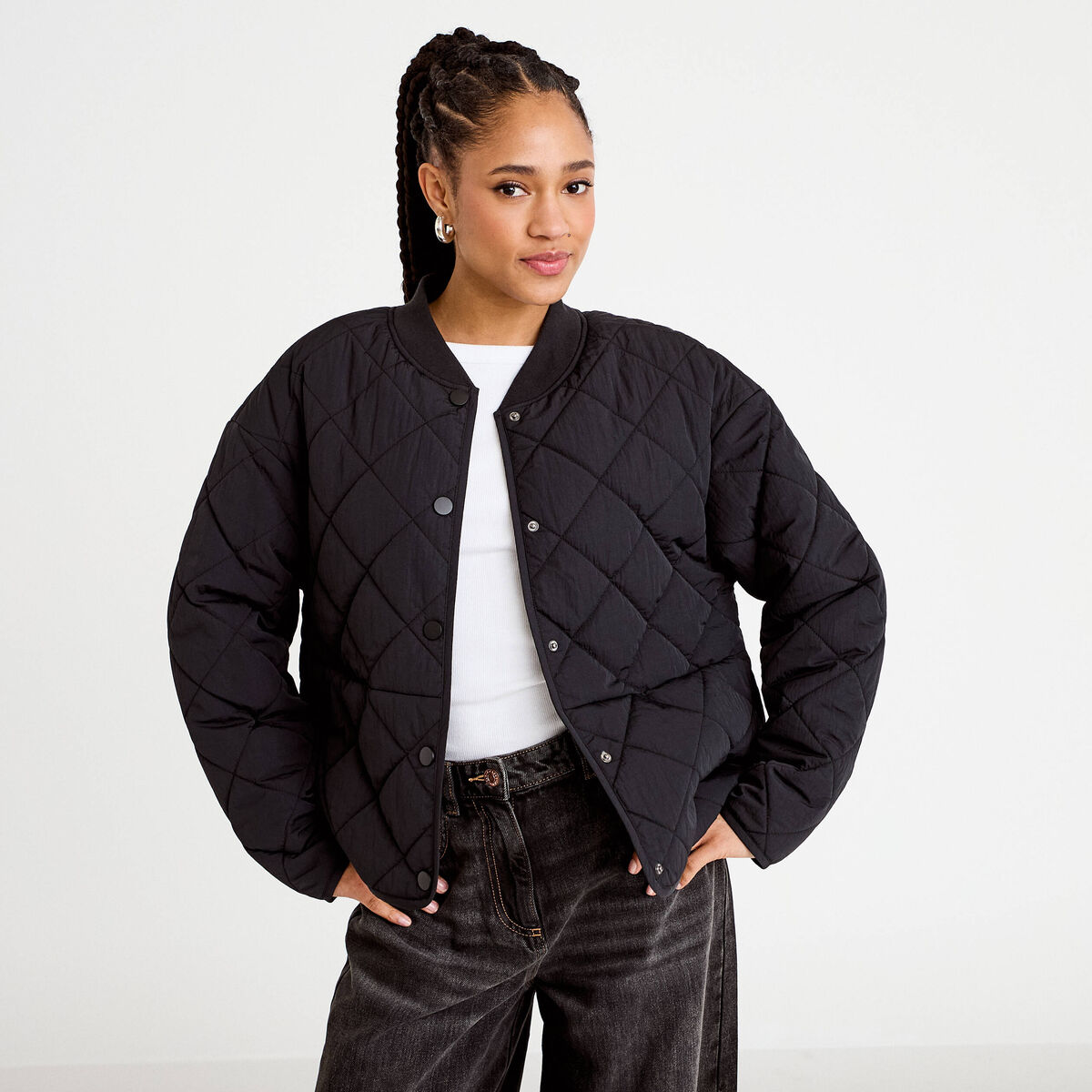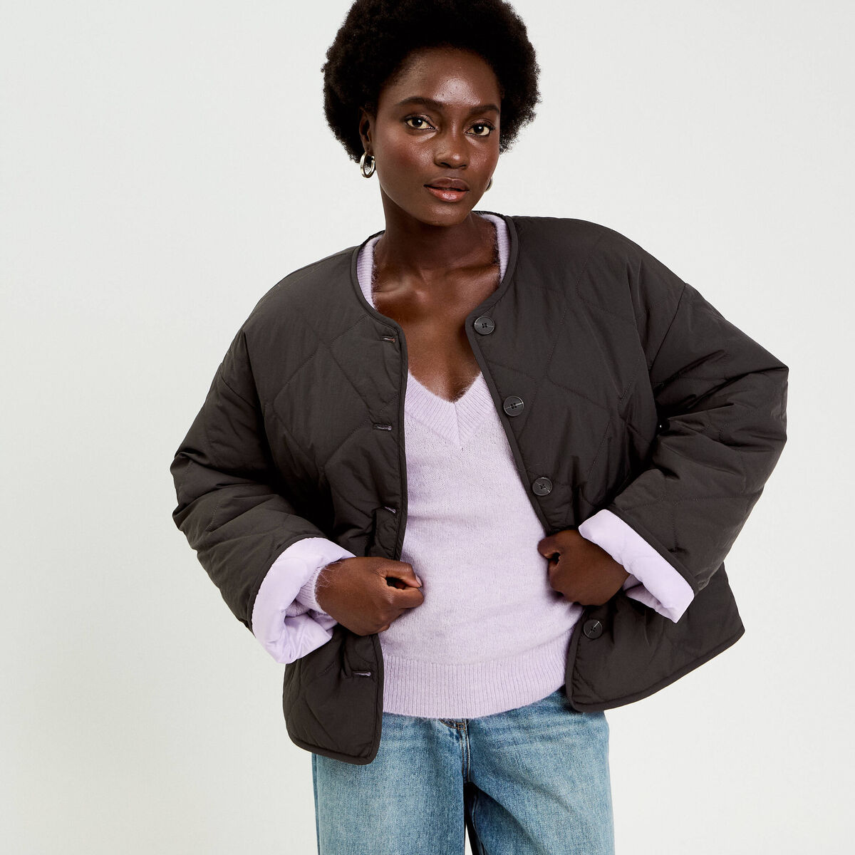 Veste matelassée zippée gris clair femme