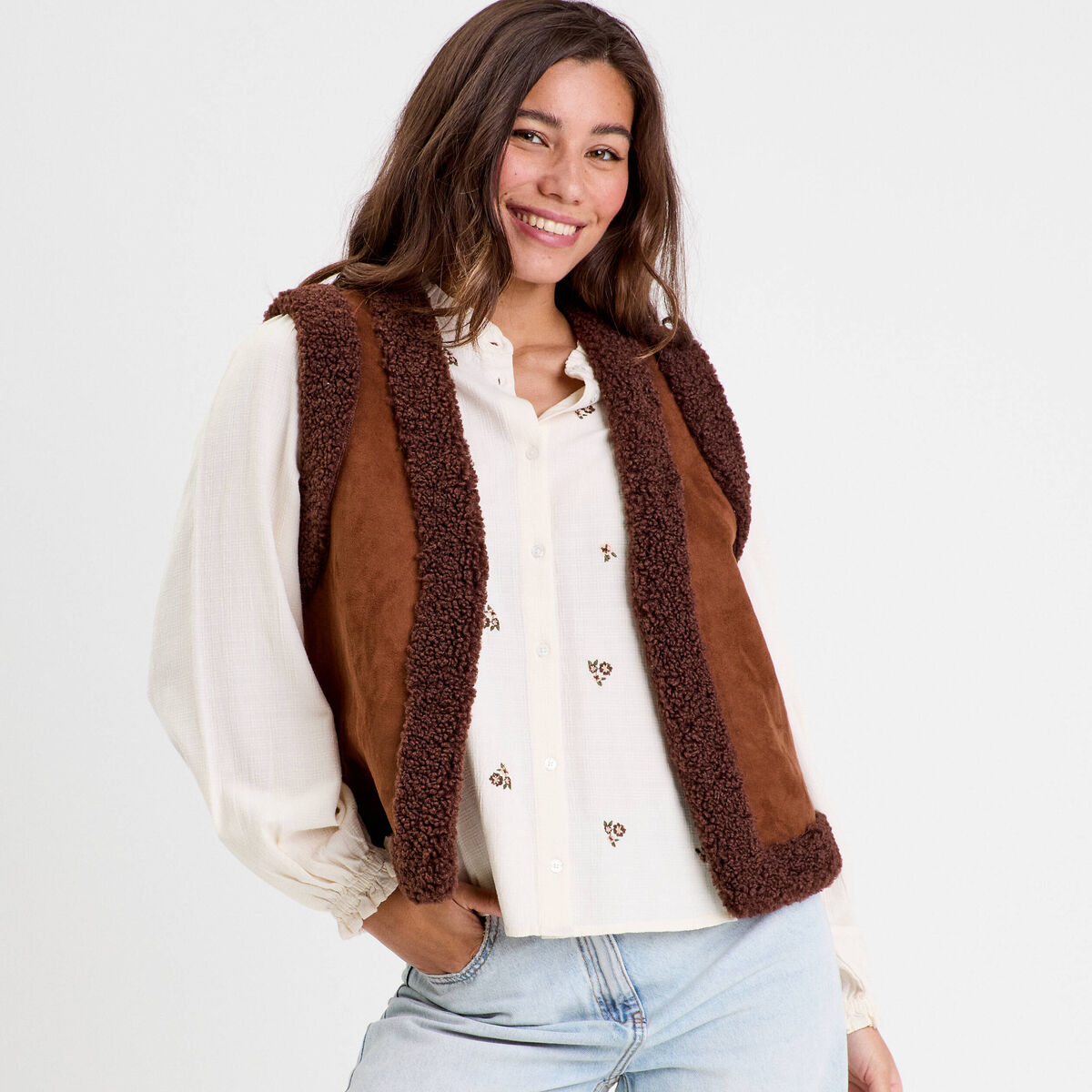Veste sans manches marron foncé femme