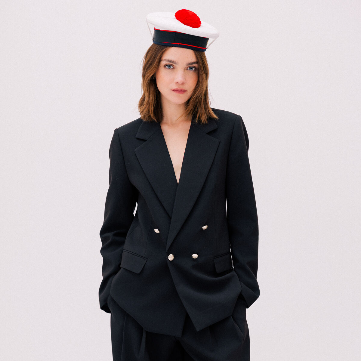 Blazer col tailleur manches longues noir femme