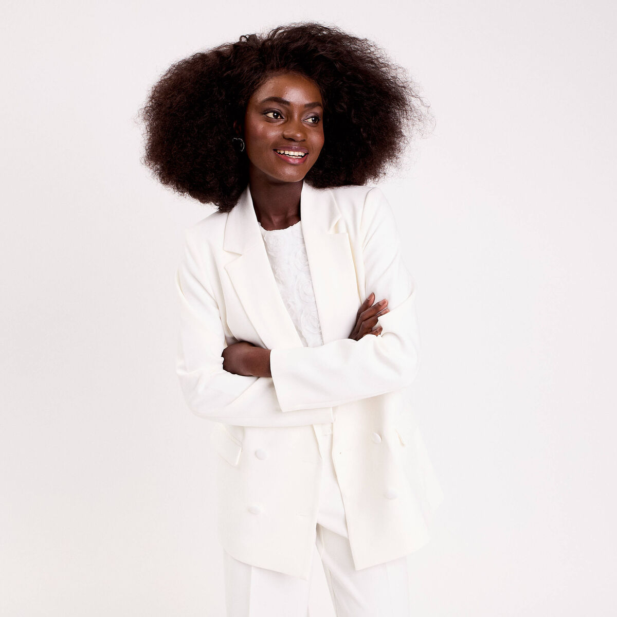 Blazer col classique manches longues ecru femme