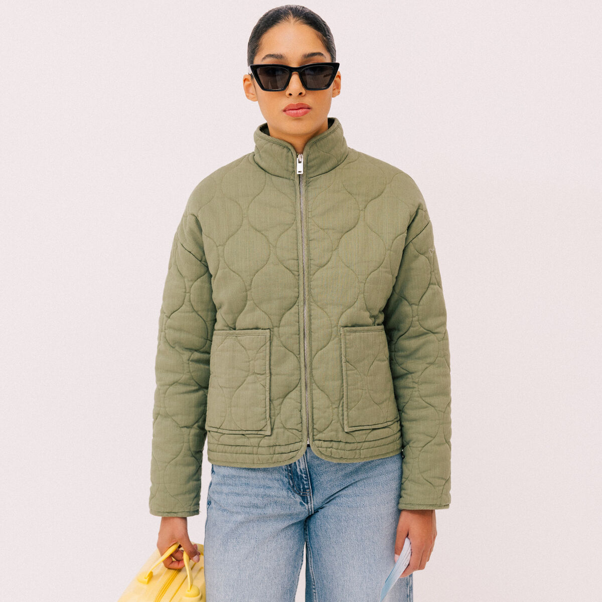 Veste matelassée zippée vert kaki femme