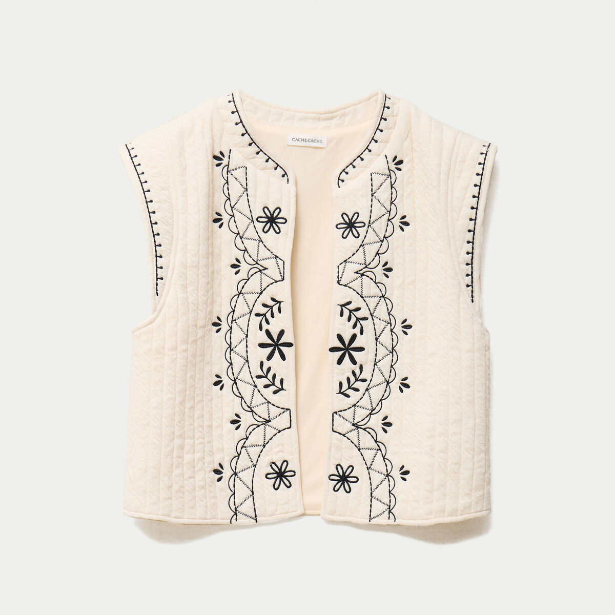 Veste sans manches brodée ecru femme