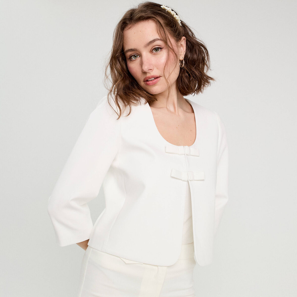 Veste courte détails noeuds blanc femme