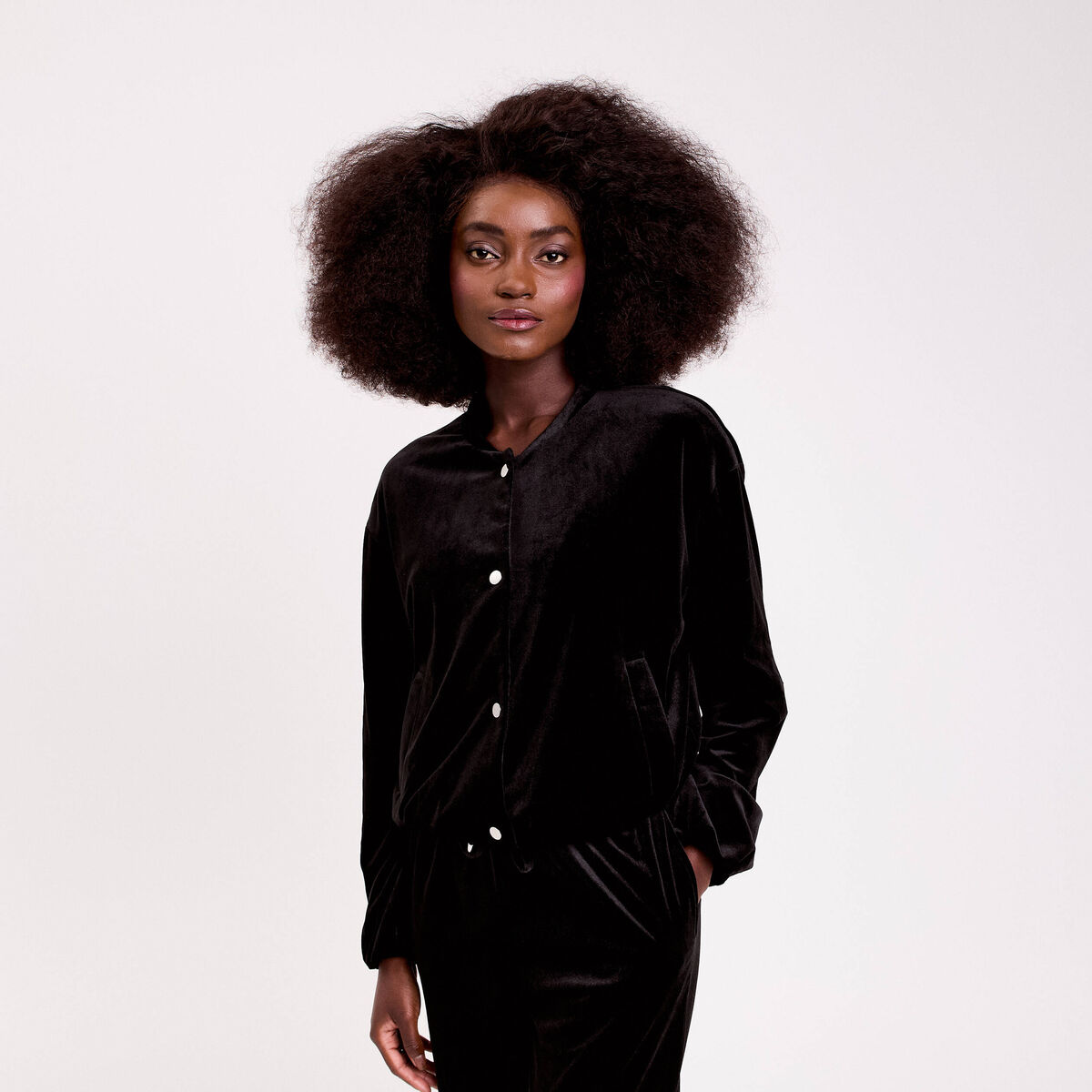 Veste teddy velours noir femme