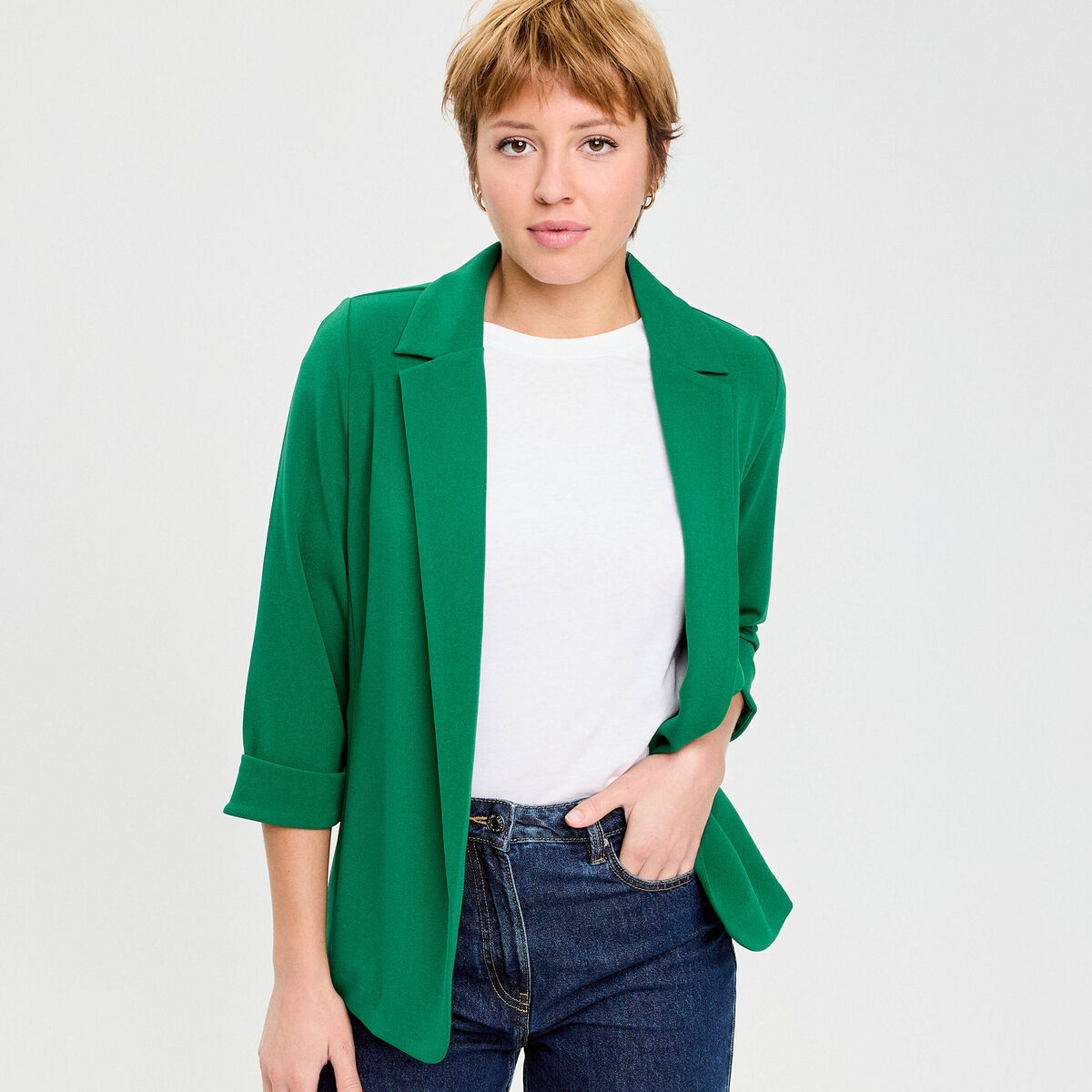 Veste cintrée col chale manches 3/4 vert femme