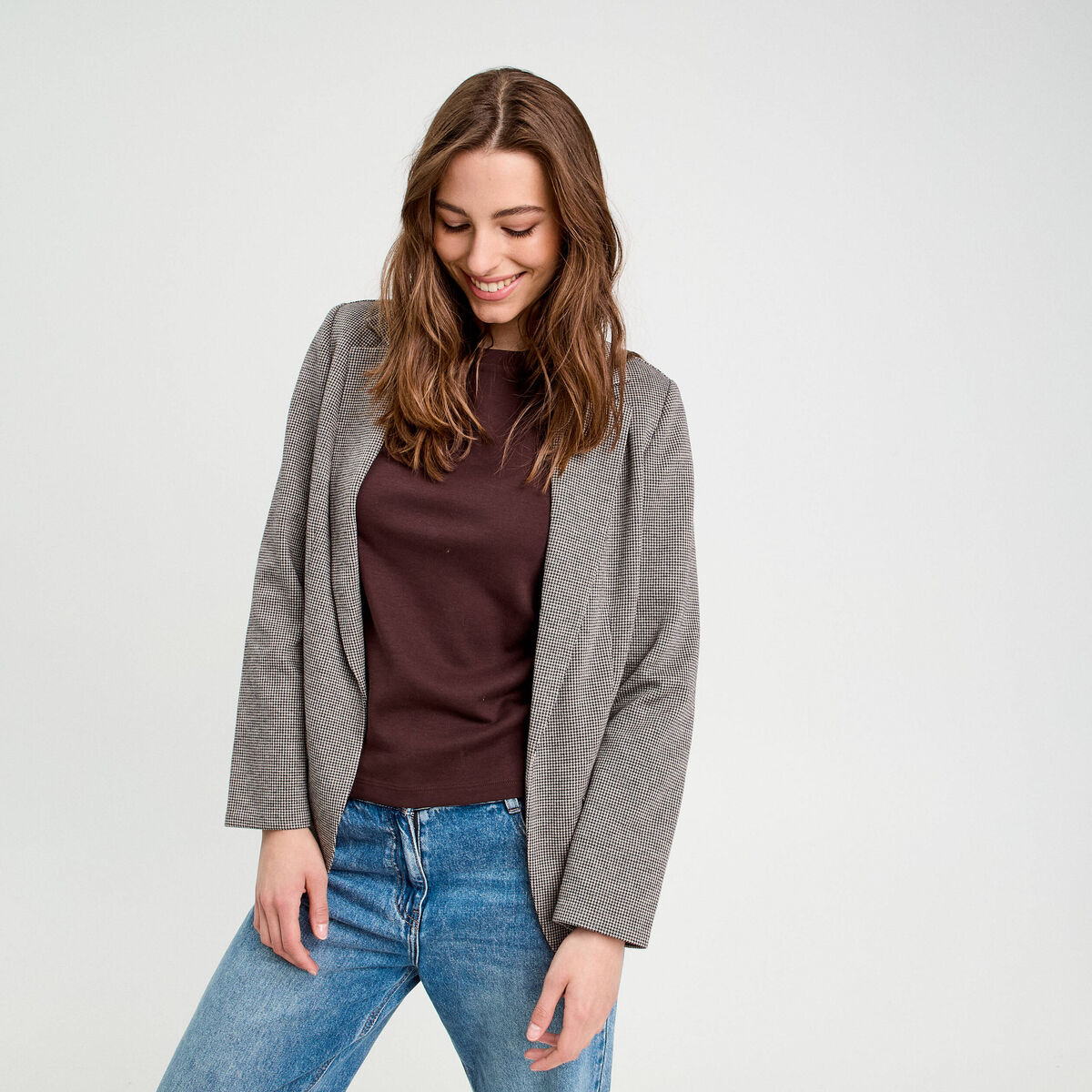 Veste ajustée boutonnée gris femme