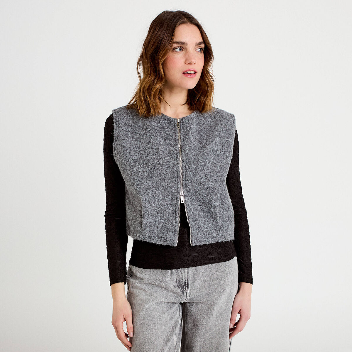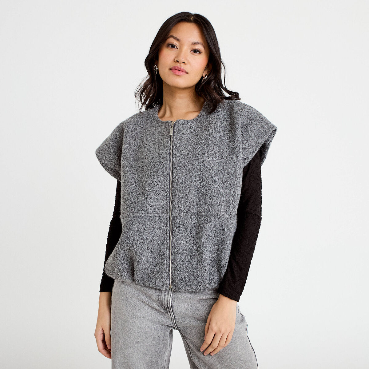 Veste oversize sans manches col rond gris clair femme