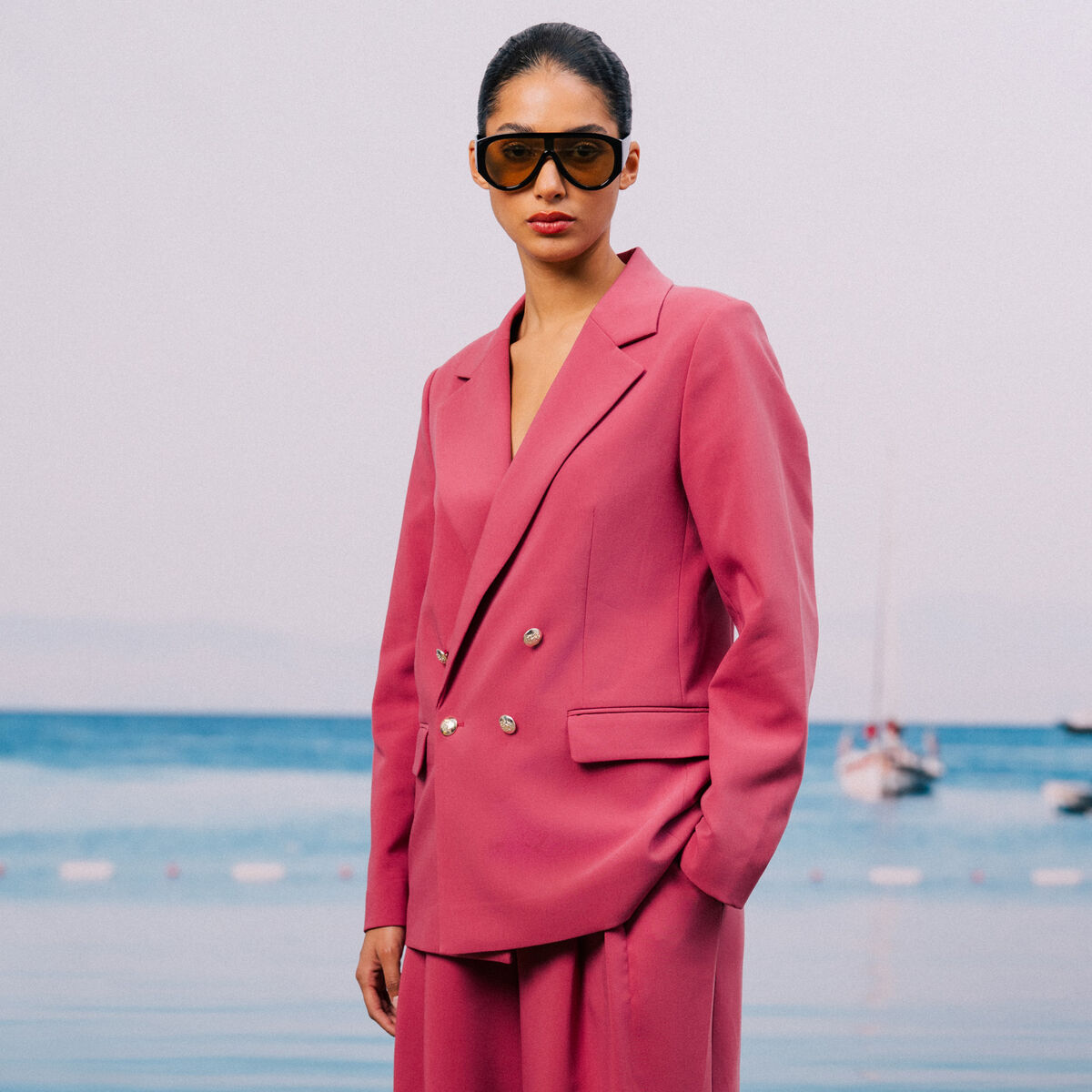 Blazer col tailleur manches longues vieux rose femme