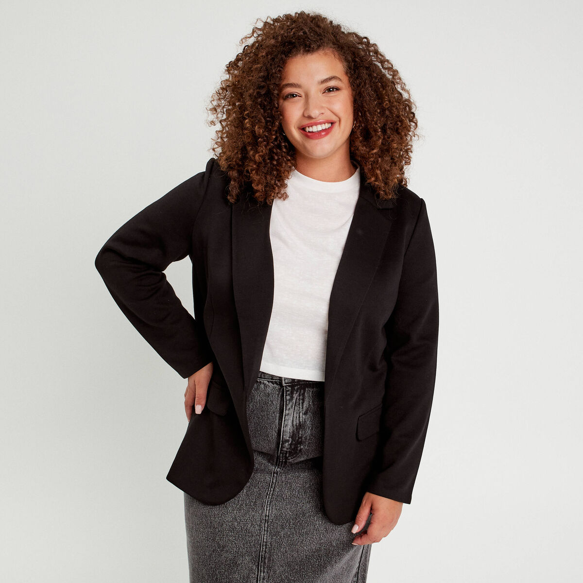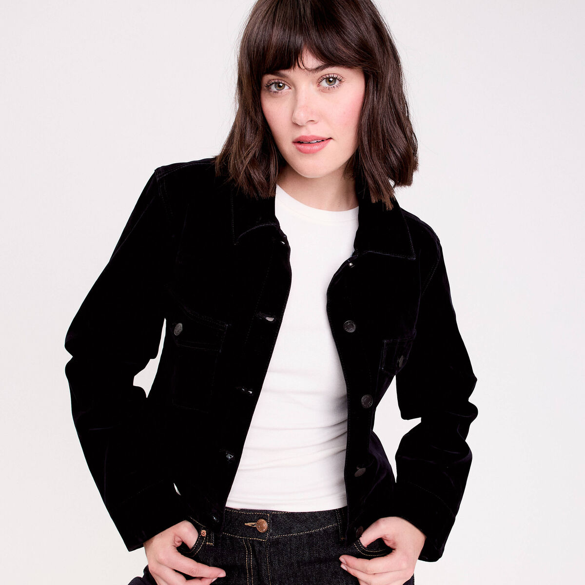 Veste droite courte manches longues noir femme