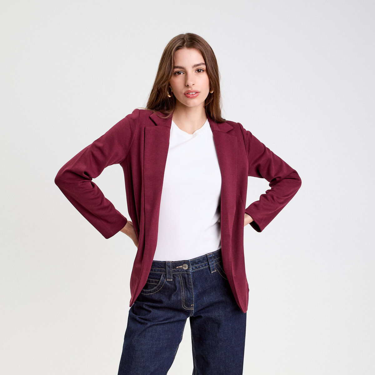 Veste blazer cintrée bordeaux femme