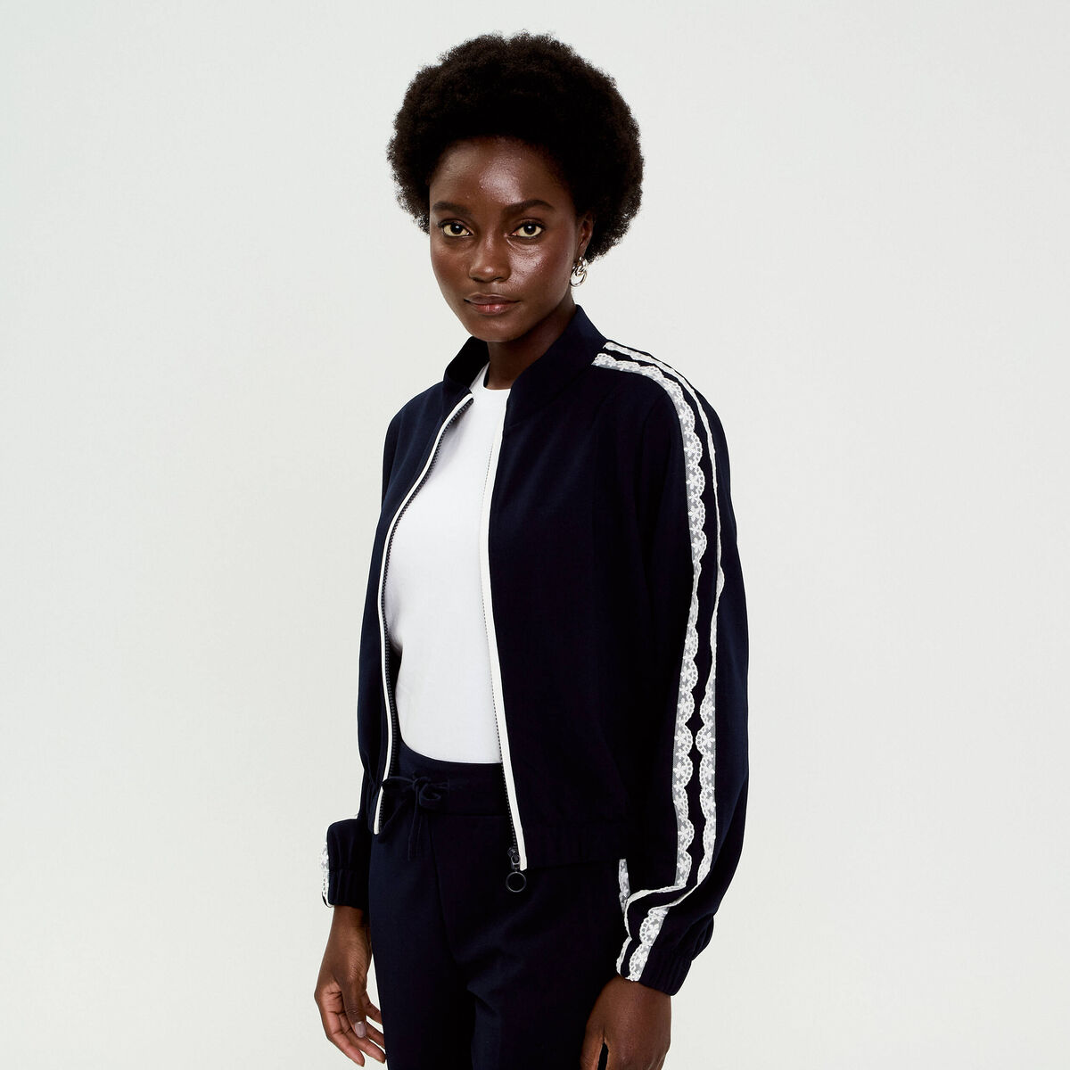 Veste zippée manches longues bleu marine femme