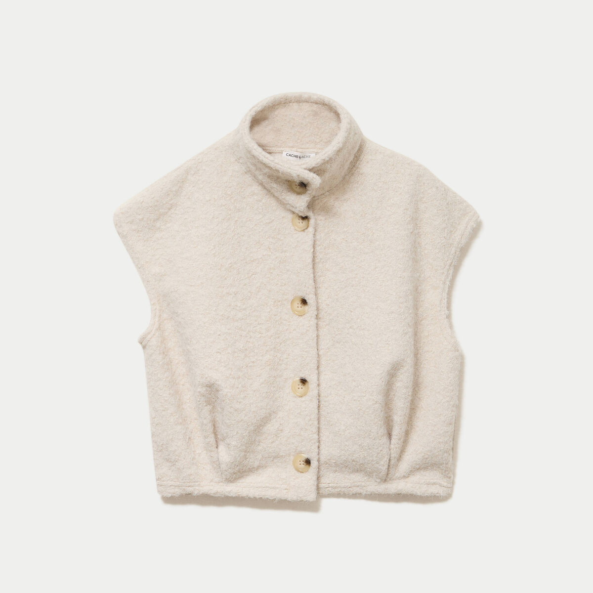 Veste bouclette sans manches col montant sable femme